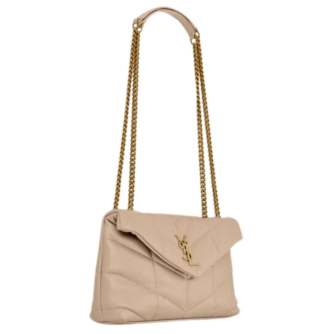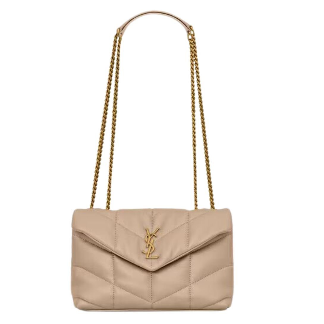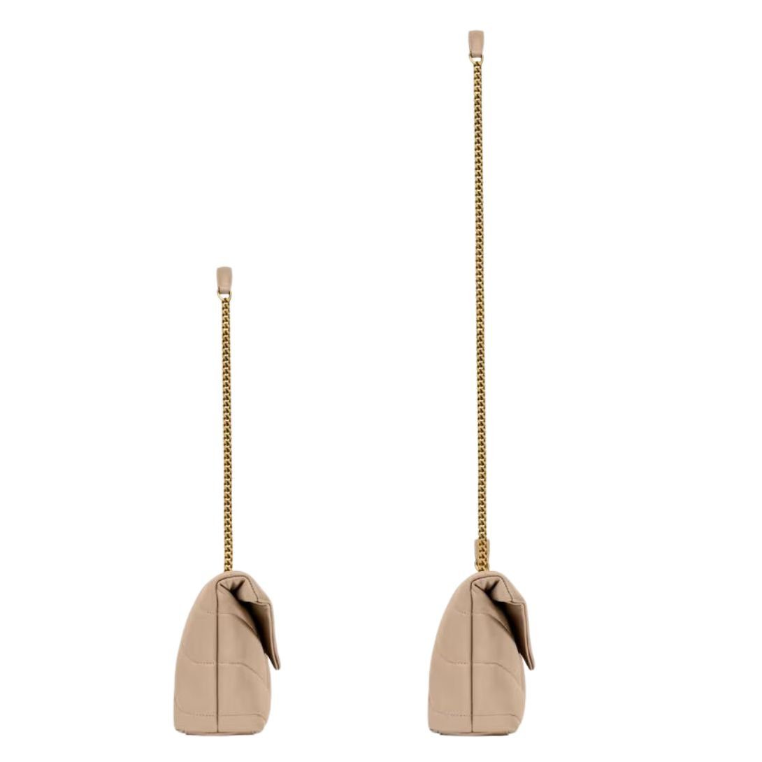 The Mini Loulou Puffer is a smaller version of the classic icon, exuding elegance and versatility. Made from soft nappa lambskin with exquisite chevron quilting, it is a true statement piece for any occasion.