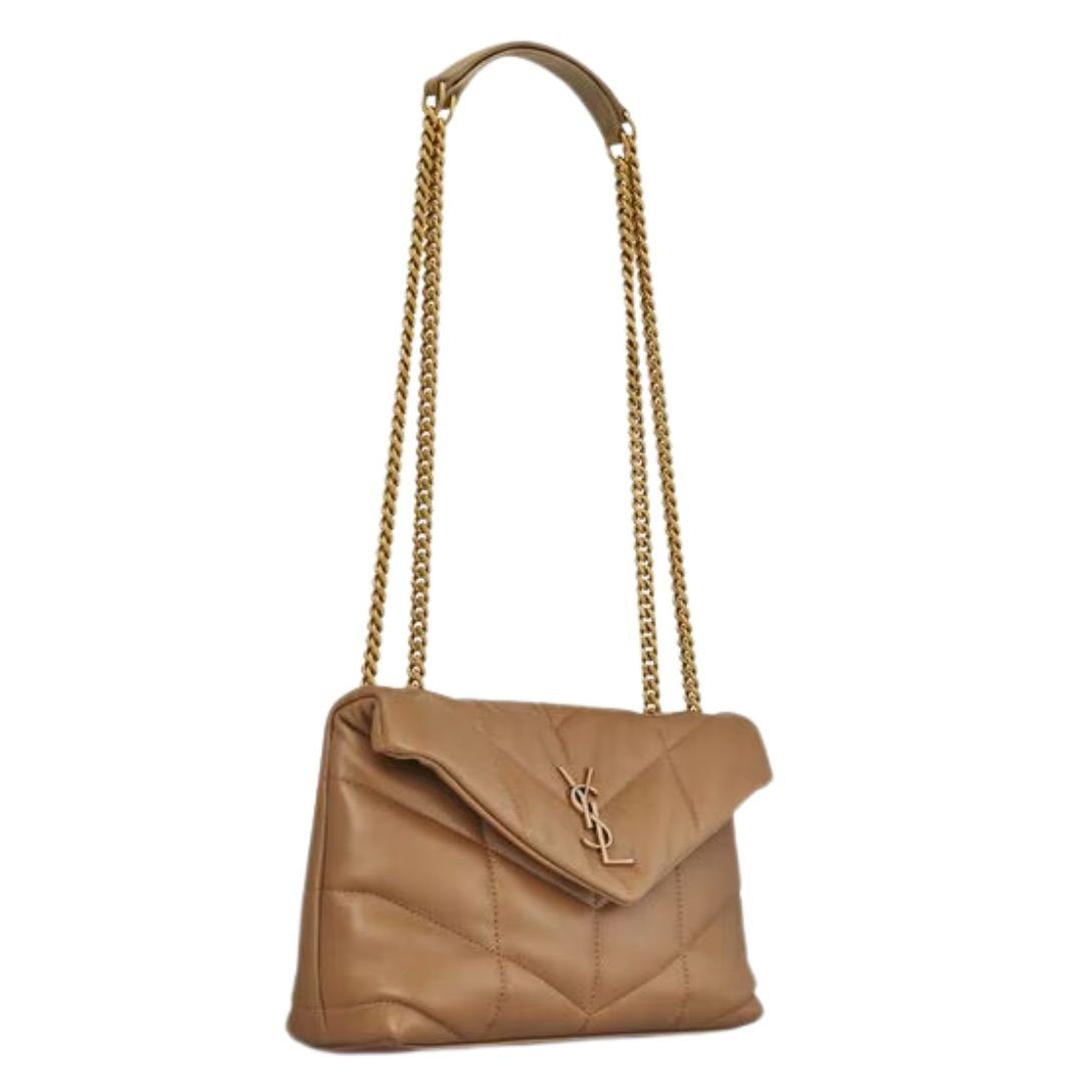 The Mini Loulou Puffer captures the essence of the classic design, crafted from soft nappa lambskin with chevron quilting. This mini version combines the timeless appeal of the Loulou Puffer with a compact, practical form.