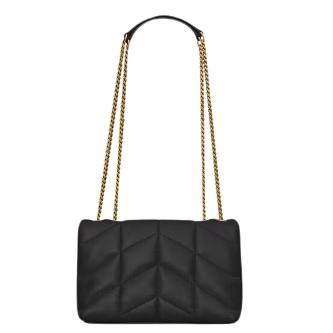 The Mini Loulou Puffer presents a more compact version of the signature style, made from soft nappa lambskin with chevron quilting. It embodies a perfect blend of luxury and practicality, offering timeless elegance in a smaller form.