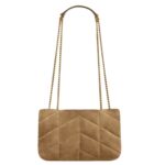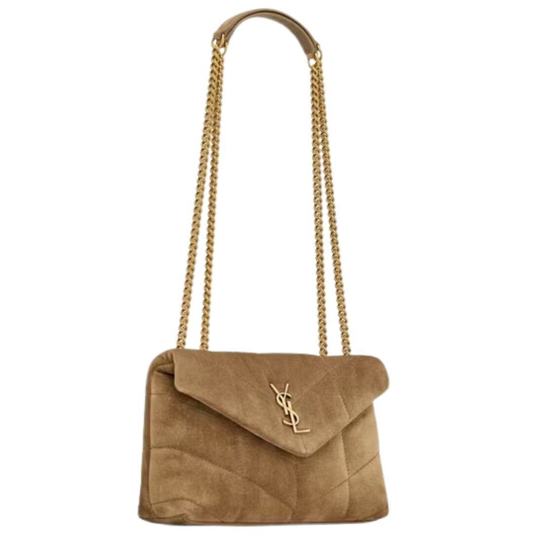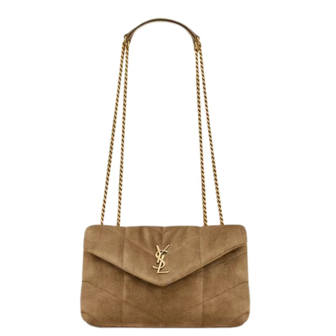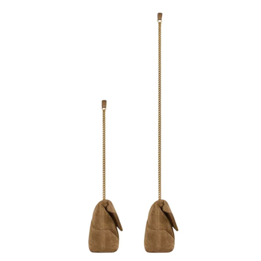 The Mini Loulou Puffer reimagines the timeless style in chevron-quilted suede, delivering a luxurious texture and modern sophistication. Its compact design makes it perfect for day-to-evening wear.