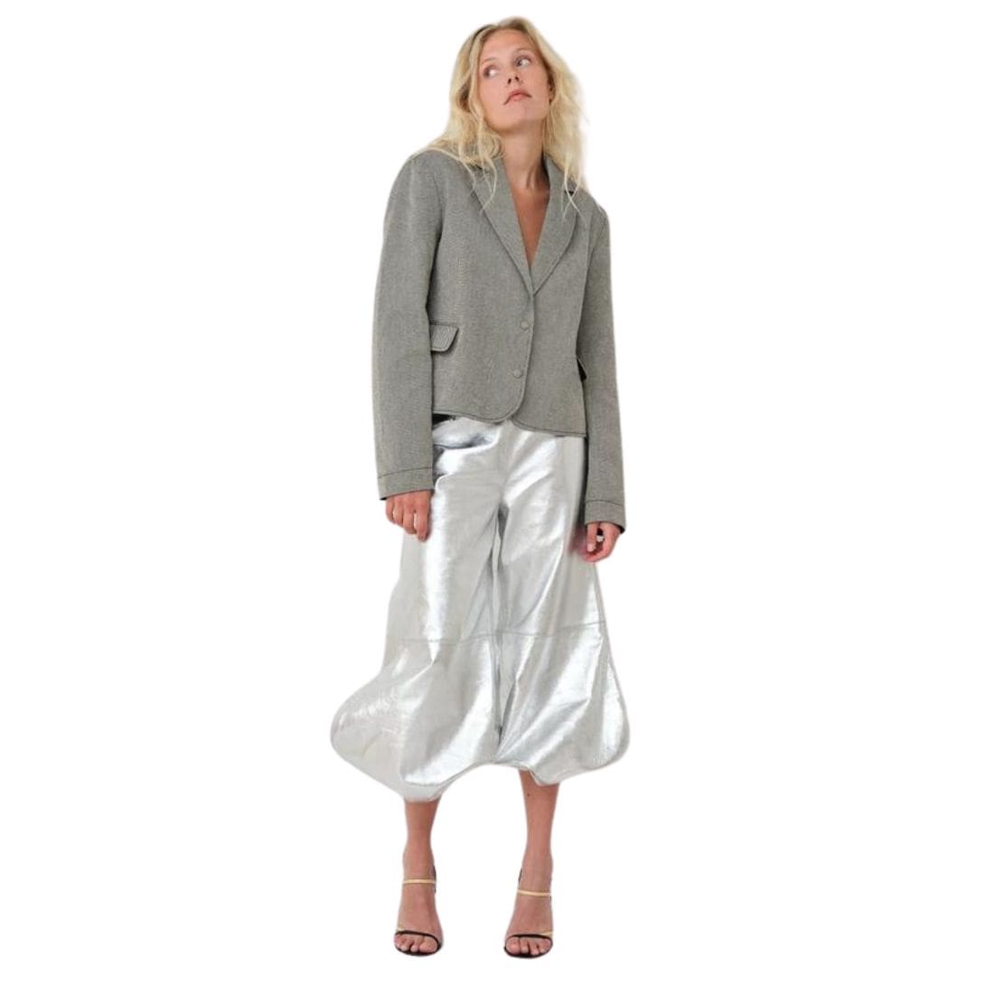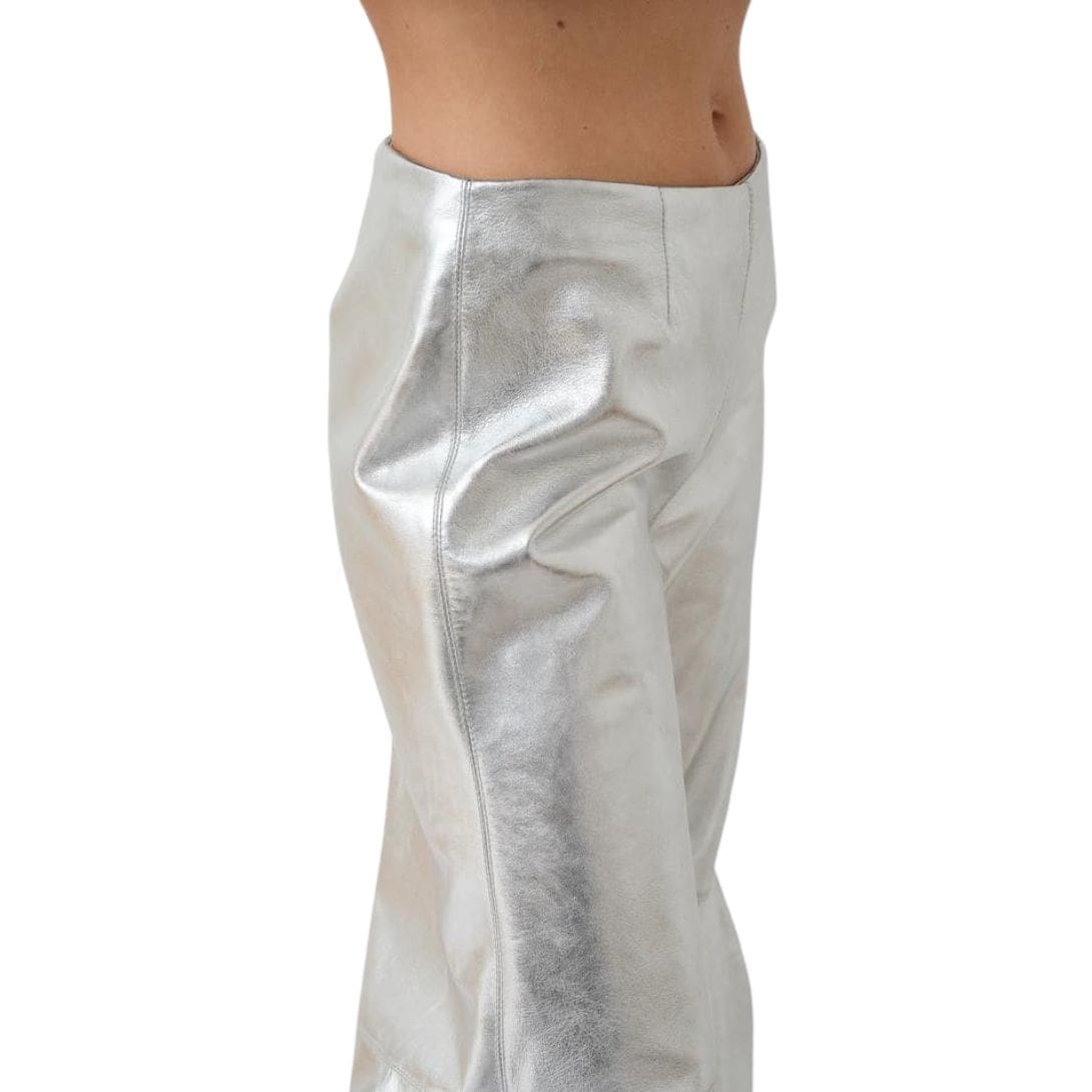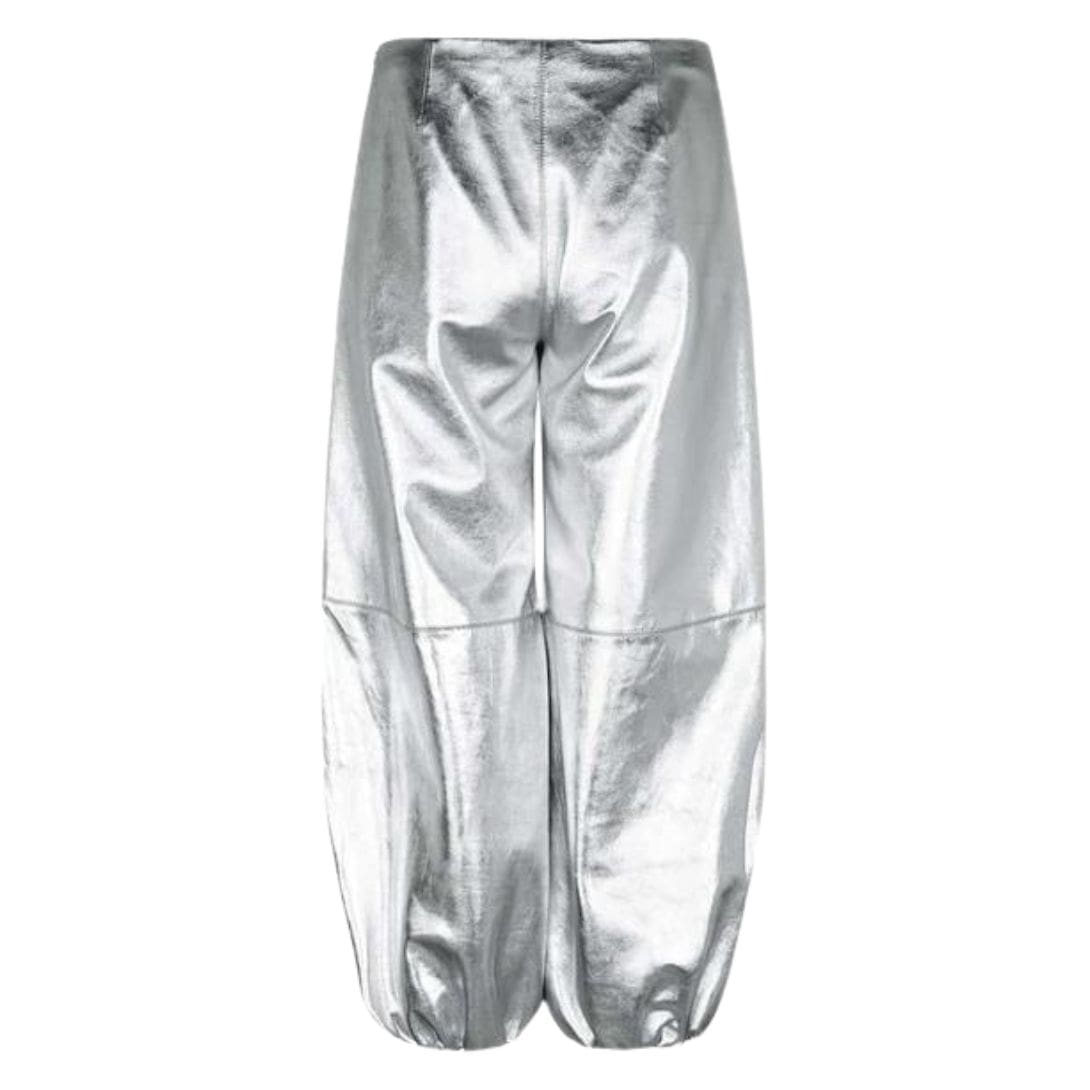 The Saks Potts Steffi Pants in Silver are a striking addition to any wardrobe, offering a perfect blend of contemporary style and luxurious materials. These pants are crafted from high-quality, metallic silver fabric that catches the light beautifully, creating a bold, eye-catching effect. The sleek, reflective finish adds a touch of futuristic elegance, making these pants ideal for fashion-forward individuals who want to stand out in any setting. SAKS POTTS STEFFI PANTS SILVER