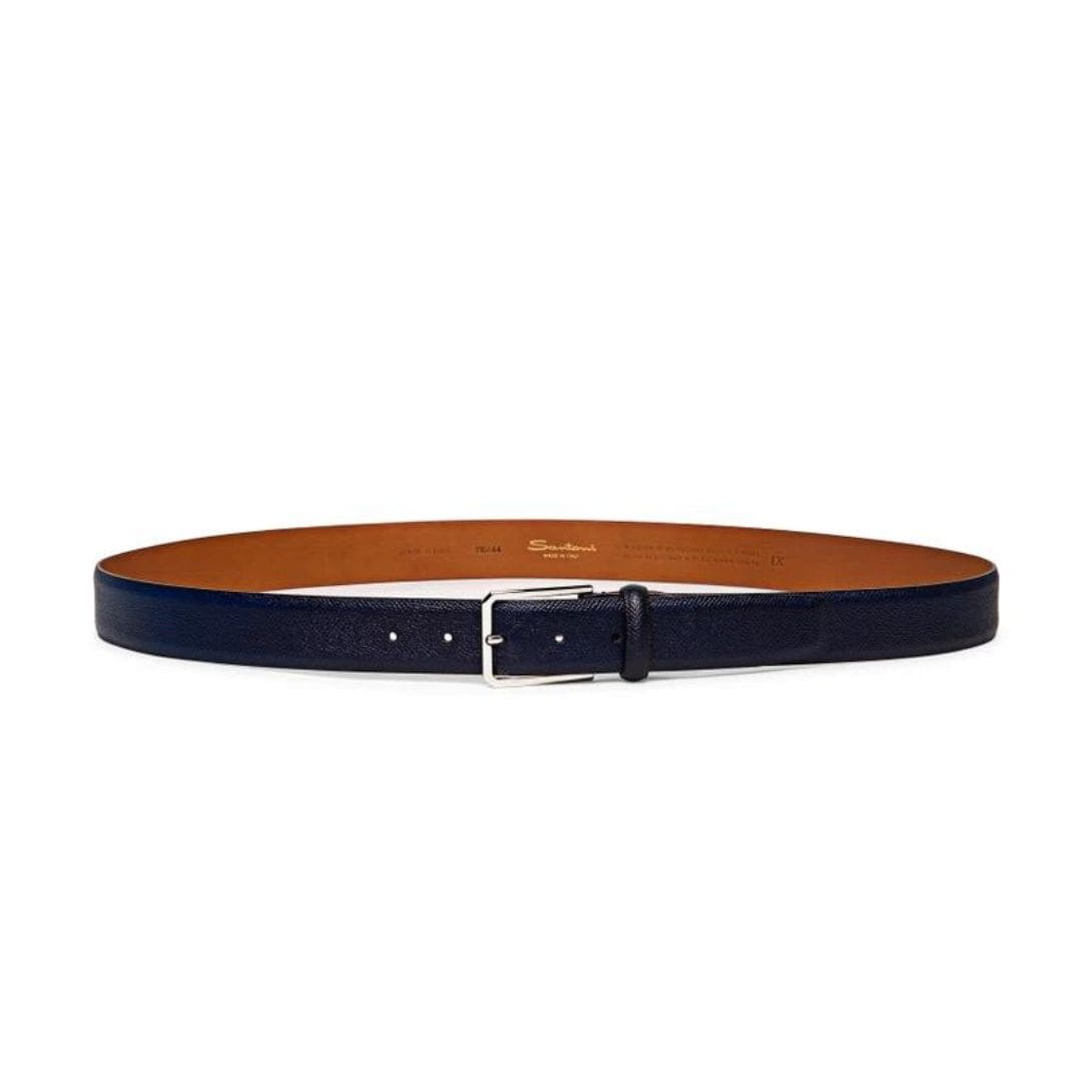 Versatile and sophisticated, the Santoni Adjustable Blue Saffiano Leather Belt transcends fleeting trends, remaining a timeless accessory that effortlessly transitions from season to season. Whether paired with tailored trousers for a formal occasion or worn with jeans for a more casual look, it exudes an air of refined elegance that sets you apart with understated confidence and style. Embodying the essence of Italian luxury, this belt is more than just an accessory—it’s a symbol of impeccable taste and enduring sophistication.