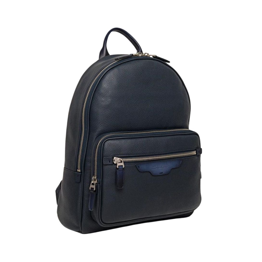 SANTONI BLUE TUMBLED LEATHER BACKPACK