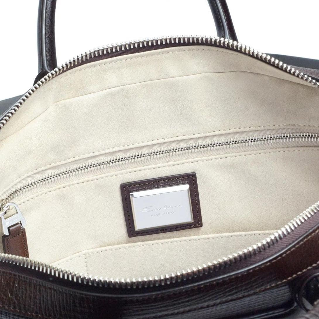 Beyond its impeccable exterior, the Santoni briefcase boasts a refined interior lined with sumptuous fabric, further enhancing its luxurious appeal. Every aspect of its design, from the ergonomically designed handles to the adjustable shoulder strap, is tailored for comfort and convenience, allowing you to navigate your daily endeavors with effortless grace.