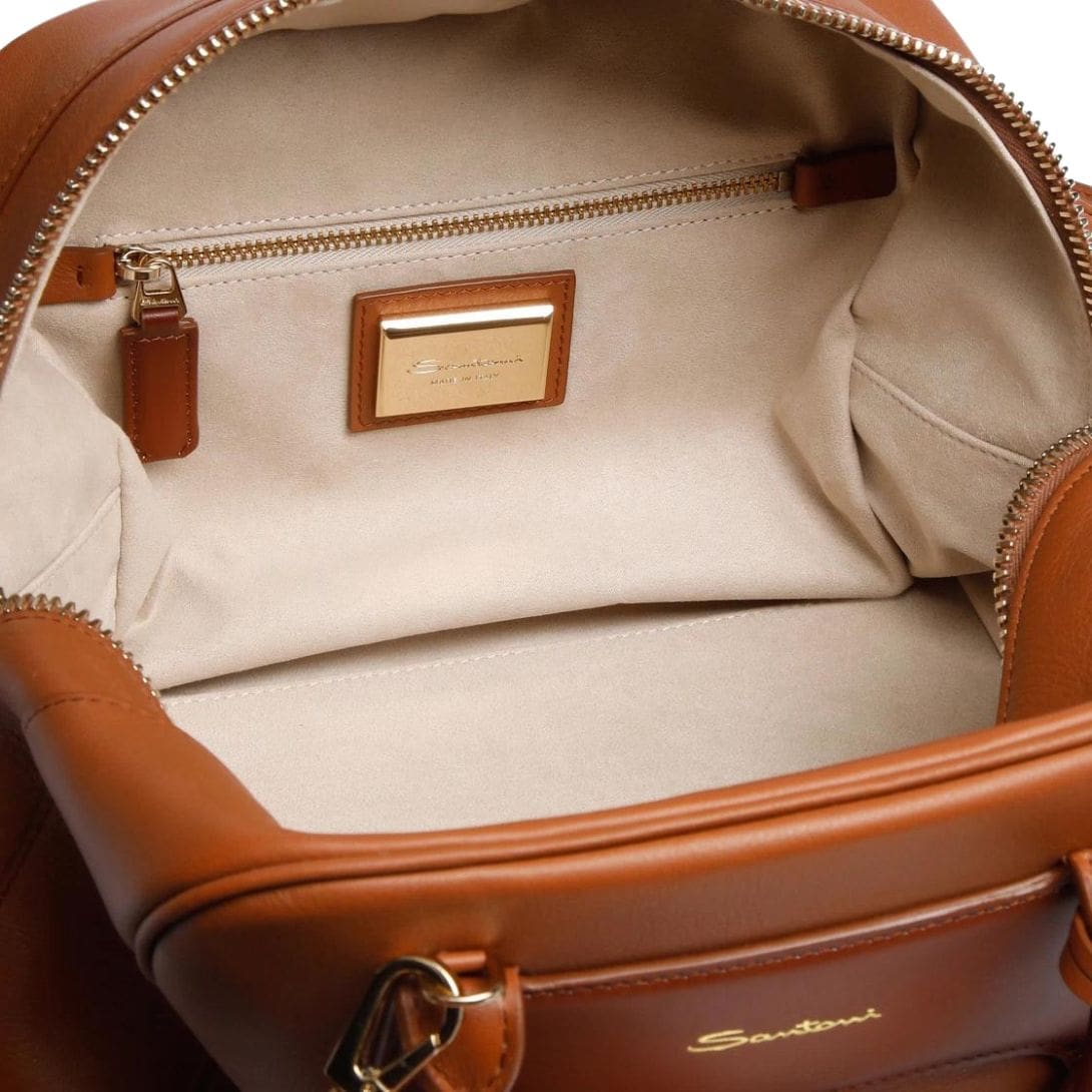Whether paired with casual denim and a crisp white shirt for daytime chic or with a tailored ensemble for a sophisticated evening look, the Santoni Brown Leather Handbag effortlessly elevates any outfit. Its versatility makes it a wardrobe staple for the modern woman, seamlessly transitioning from day to night with ease.