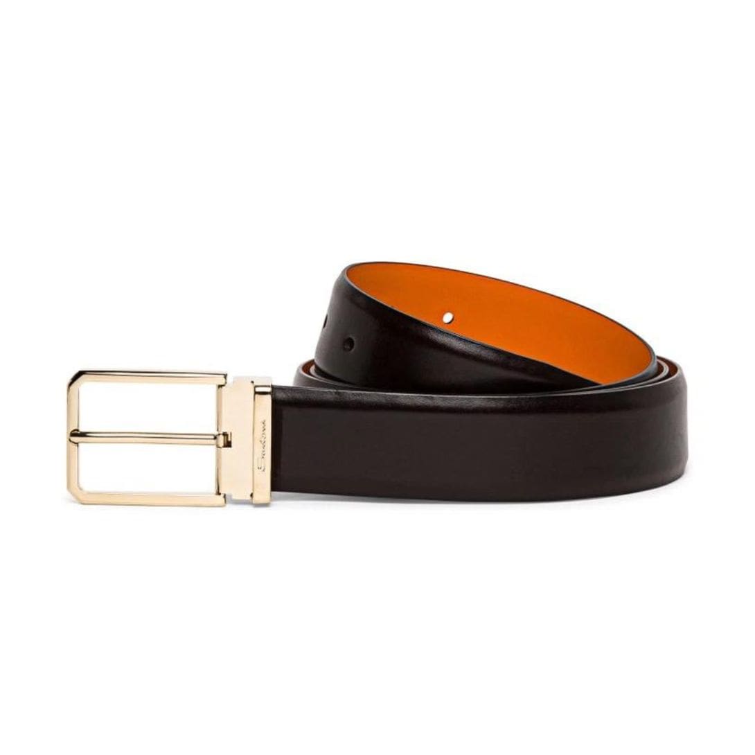SANTONI REVERSIBLE AND ADJUSTABLE SMOOTH BLACK AND TUMBLED BROWN LEATHER BELT The Santoni Reversible and Adjustable Smooth Black and Tumbled