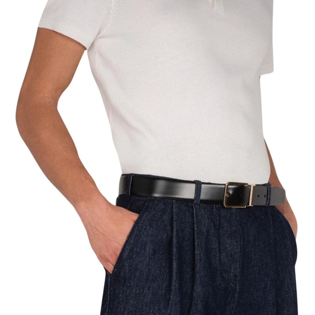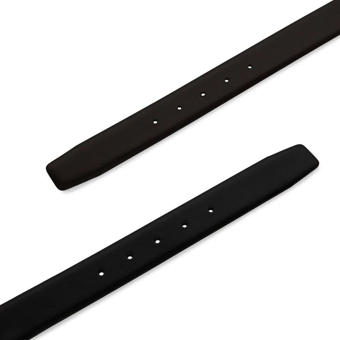 The belt’s reversible design is ingeniously engineered for ease of use. A simple twist of the polished, silver-tone buckle seamlessly switches the color, making it an ideal accessory for the modern, dynamic wardrobe. This buckle not only serves as a functional component but also adds a touch of elegance with its minimalist, yet refined, aesthetic.