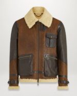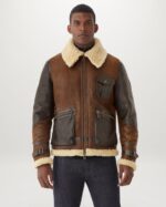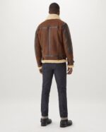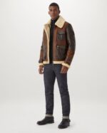 Shearling Leather Jacket is made from full-grain original Spanish lamb skin with shearling a cracked-wax finish to the outer shearling offers exceptional natural warmth and a durable luxurious aviator jacket and full-grain original Spanish lamb skin with shearling lining and a cracked-wax finish to the outer layer. The shearling provides natural warmth and durability, ensuring you stay comfortable and stylish in colder weather.