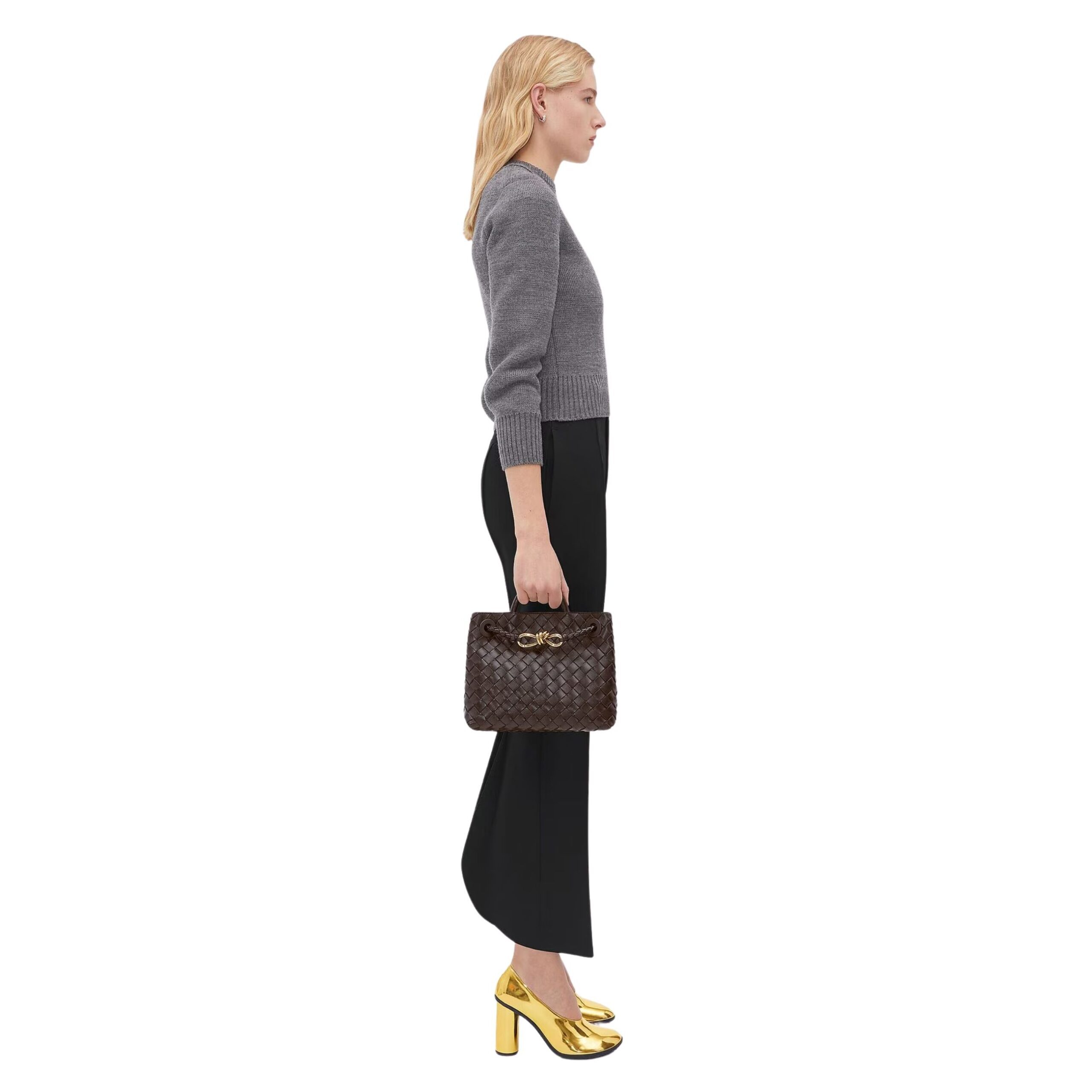 Versatile in design, the Small Andiamo Bag complements a wide range of looks—from tailored office wear to casual chic ensembles—making it a staple piece in any wardrobe. Its understated elegance reflects Bottega Veneta’s philosophy of timeless style, allowing it to transition seamlessly from casual outings to sophisticated events. The combination of craftsmanship, luxury materials, and functional design ensures that this bag is not only a statement accessory but also a practical solution for everyday use.