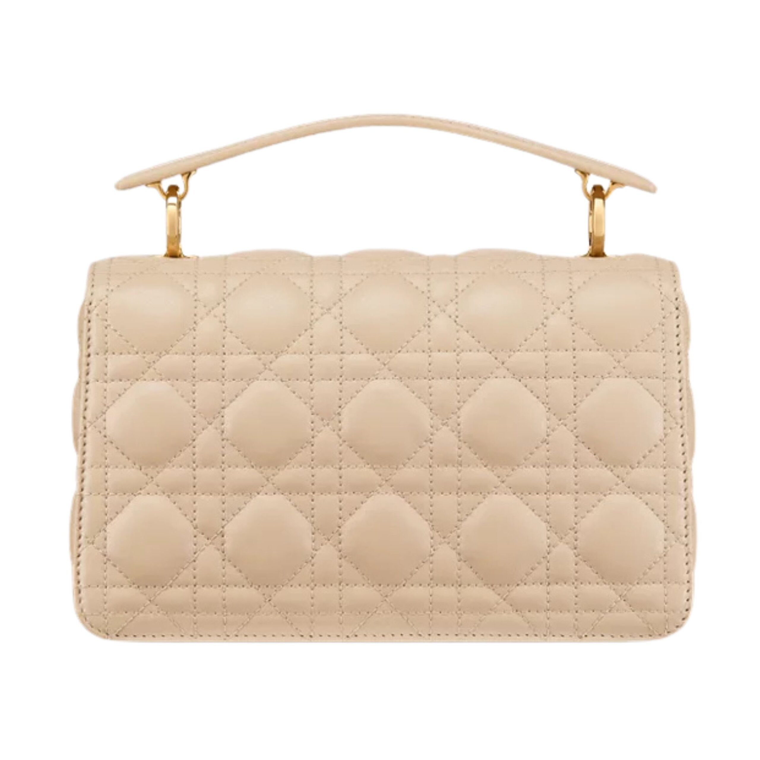 The Small Dior Jolie Top Handle Bag is a refined embodiment of elegance, blending timeless Dior heritage with modern femininity. Crafted from luxurious calfskin leather, this compact handbag showcases the brand’s signature craftsmanship and attention to detail. The smooth curves of its structured silhouette are complemented by polished gold-tone hardware and the iconic “CD” twist clasp on the front flap, offering both security and a subtle nod to Dior’s legacy.