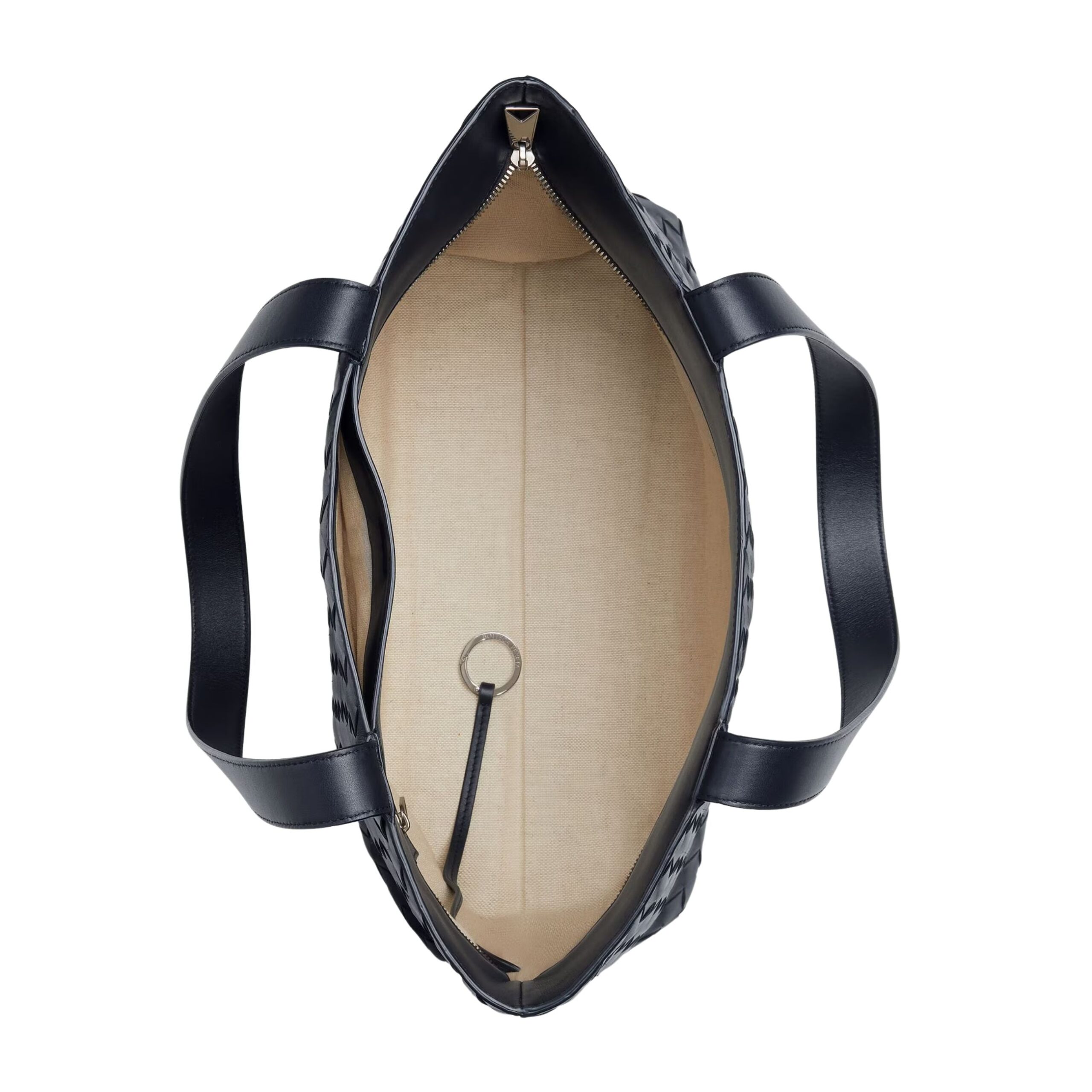 Versatility is central to its appeal. The compact scale ensures ease on the go, while the refined texture and balanced proportions add quiet sophistication to any outfit. Whether styled with a blazer and loafers or a silk dress and heels, the tote introduces depth and dimension through its woven surface and sculpted form. Its enduring quality makes it an investment piece that grows more characterful with wear, reflecting the authenticity of true Italian craftsmanship.