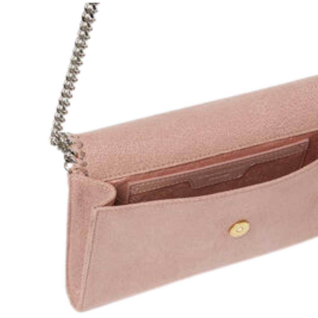 A classic STELLA MCCARTNEY FALABELLA WALLET CROSSBODY BAG style reimagined in an endlessly versatile silhouette, this envelope-shaped vegan Falabella bag is perfect for any ensemble. Consciously crafted from suede-like matte Shaggy Deer fabric with a semi-gloss grain, it offers a cruelty-free alternative to animal leather. The iconic diamond-cut chain frames the bag and extends into a crossbody shoulder strap.