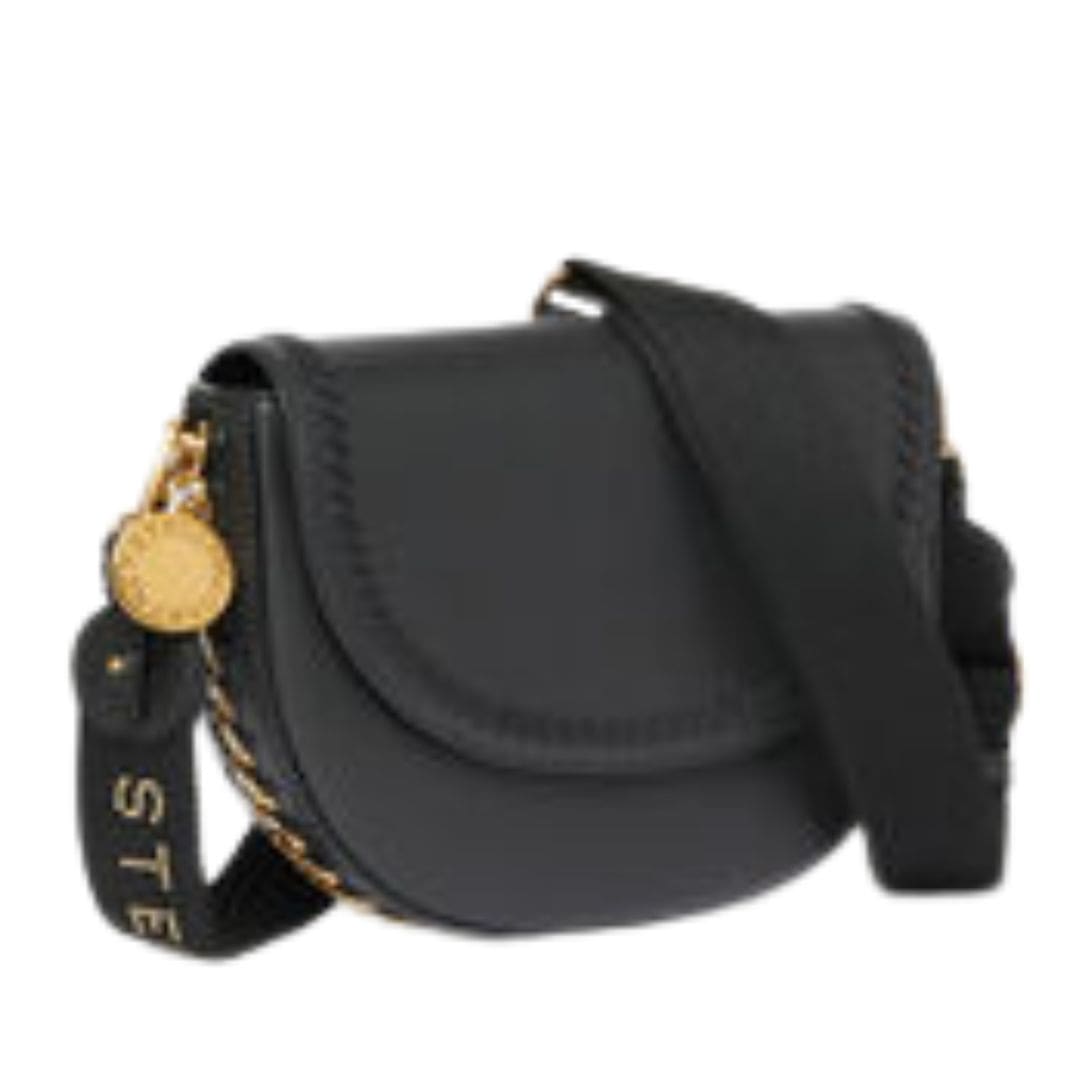 The front flap secures with a stainless steel magnetic snap fastening, while the adjustable studded Stella McCartney logo canvas shoulder strap ensures comfort and versatility.