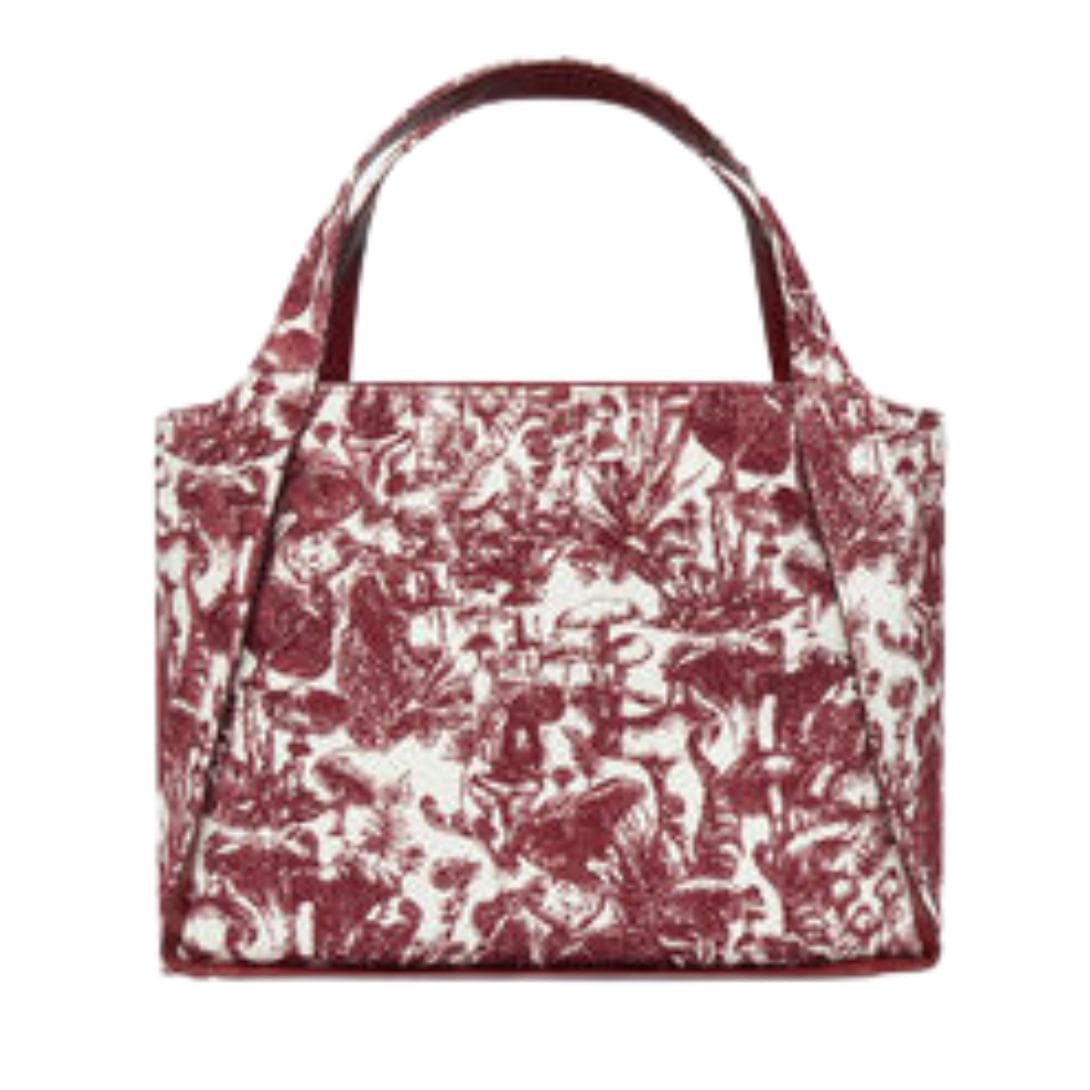 Stella Mccartney Logo Fungi Forest Toile De Jouy Tote Bag receives a seasonal update for Autumn 2023, featuring the enchanting Fungi Forest toile de Jouy print.