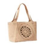Our timeless stella mccartney Logo raffia medium tote bag is elevated for High Summer in a natural raffia weave. Handcrafted by artisans in Madagascar, this bag features a durable raffia base, an easy-to-grow plant that promotes soil health and absorbs harmful gases. Responsibly finished with Stella McCartney’s logo hand-embroidered on the front, this tote bag embodies our circular and nature-positive values.