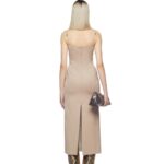 The Attico Beige Midi Dress, expertly crafted in Italy, midi dress in beige gabardine featuring double straps and logo metal adjusters. Made in Italy.