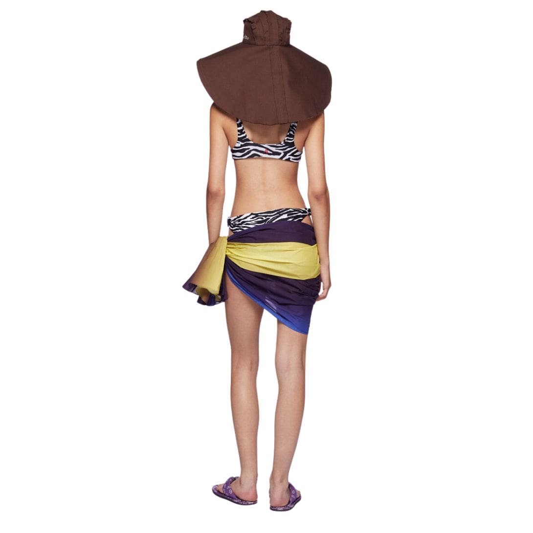 Crafted from shaded printed mousseline, this THe Attico Blue, Purple and Light Yellow Pareo features hues of blue, purple, and light yellow. It is adorned with an embroidered logo.