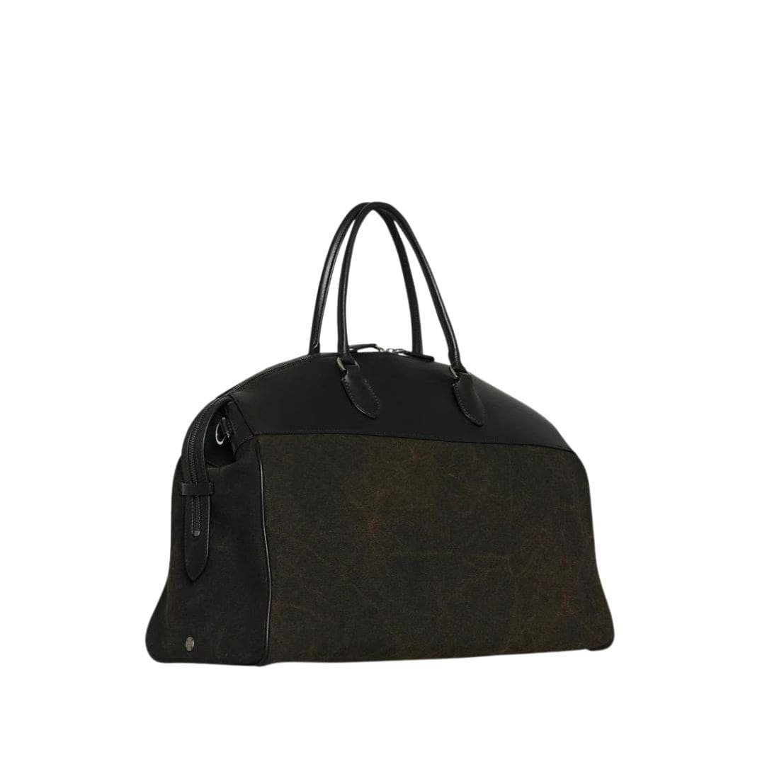 THE ROW GEORGE DUFFLE IN LEATHER AND DENIM
