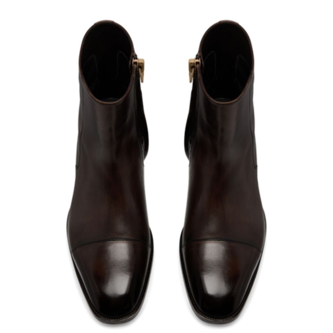 TOM FORD BURNISHED LEATHER HAINAUT ZIP BOOT