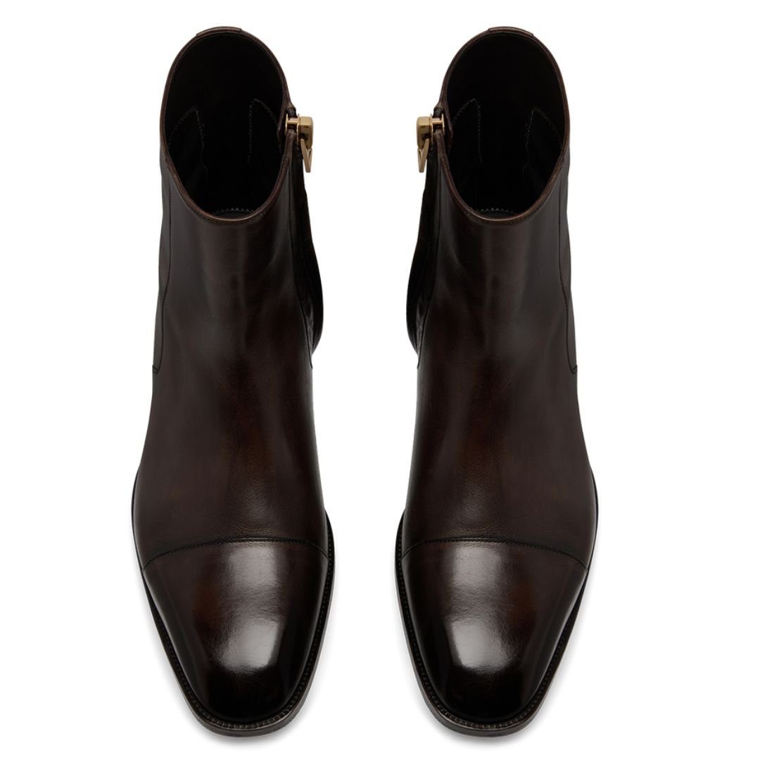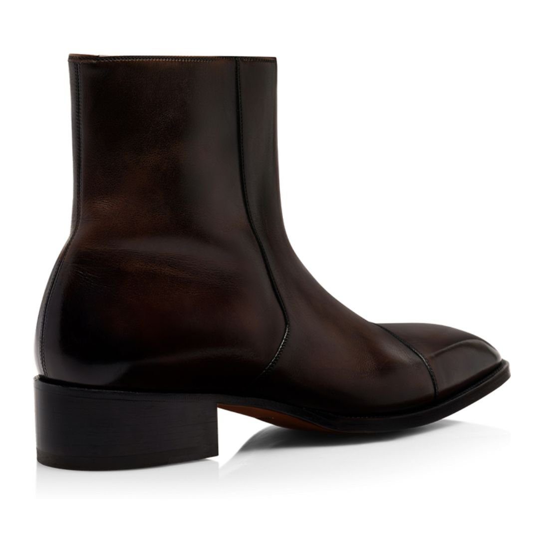 TOM FORD BURNISHED LEATHER HAINAUT ZIP BOOT