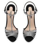 TOM FORD CRYSTAL EMBELLISHED SUEDE LEATHER JERRY SANDAL BLACK
