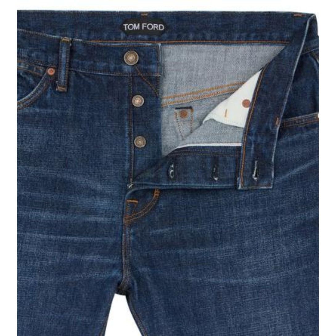 Featuring a coin pocket on the front right with a subtle Tom Ford label, these jeans combine functionality with iconic branding. The T bartacks on the button fly and hips reinforce the high-stress areas for added durability and longevity.