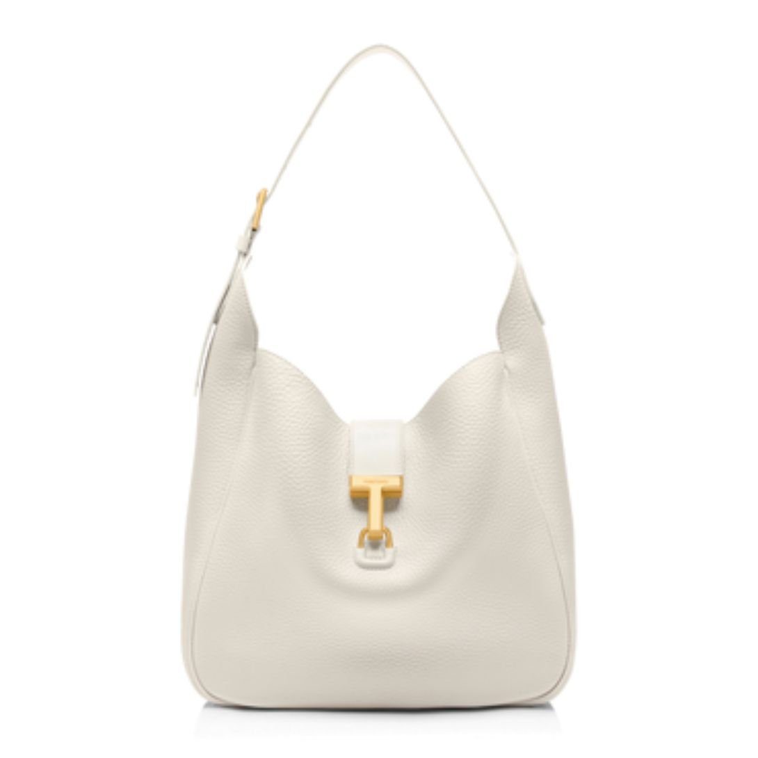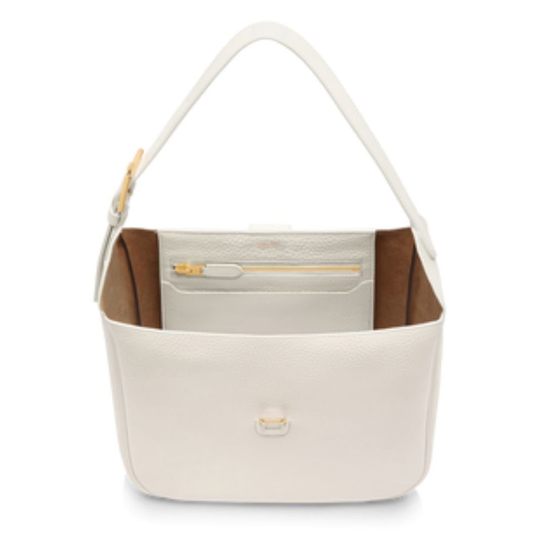 TOM FORD LEATHER MONARCH MEDIUM HOBO CHALK