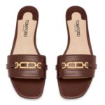TOM FORD LEATHER WHITNEY SLIDE SADDLE BROWN