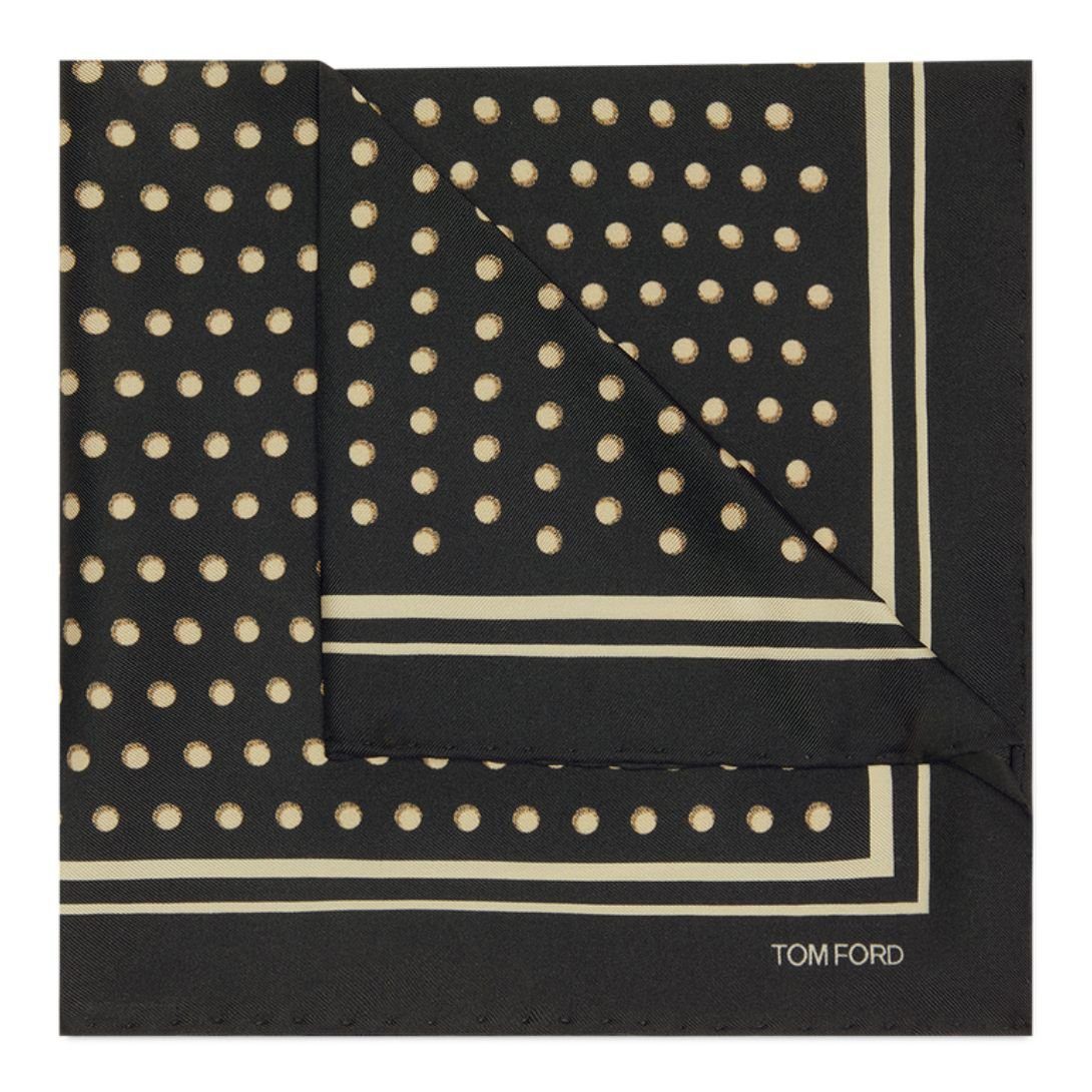 TOM FORD POLKA DOT SQUARE DESIGN POCKET SQUARE BLACK