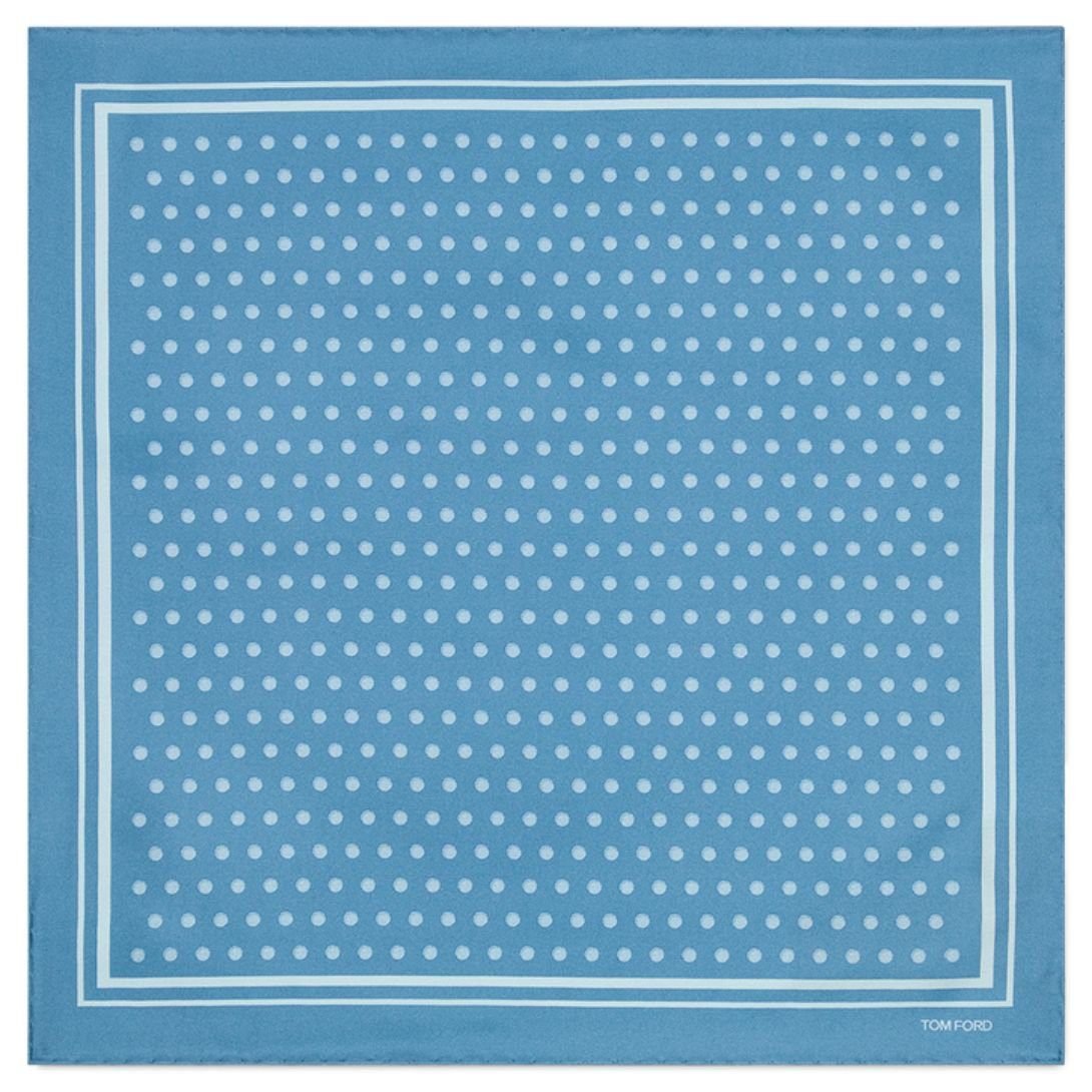 TOM FORD FRAMED POLKA DOT POCKET SQUARE LIGHT BLUE