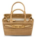 TOM FORD PRINTED CROCODILE LEATHER SMALL TOP HANDLE SAFARI BEIGE
