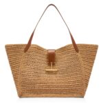 Crafted from 100% raffia (viscose) and 100% calfskin leather, this bag blends natural and luxurious materials for a stylish look. The absence of lining contributes to its lightweight and casual feel, perfect for day-to-day use.