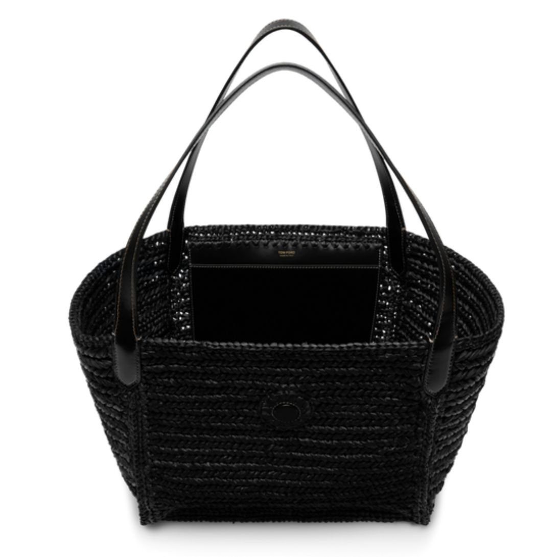 TOM FORD RAFFIA AND LEATHER TARA MEDIUM TOTE