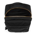 Accented with smooth leather detailing, the backpack adds a touch of sophistication to its functional design, elevating its overall aesthetic.