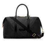 The holdall features soft leather top handles for easy carrying, while the detachable leather shoulder strap provides versatility and comfort, allowing for hands-free convenience.