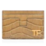 TOM FORD SHINY STAMPED CROCODILE LEATHER CLASSIC TF CARD HOLDER SAFARI BEIGE
