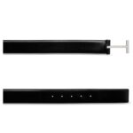 The 100% brass hardware is finished with palladium galvanization, providing a refined, sleek look that resists tarnishing and maintains its shine. The palladium finish enhances the belt’s durability and adds a luxurious touch.