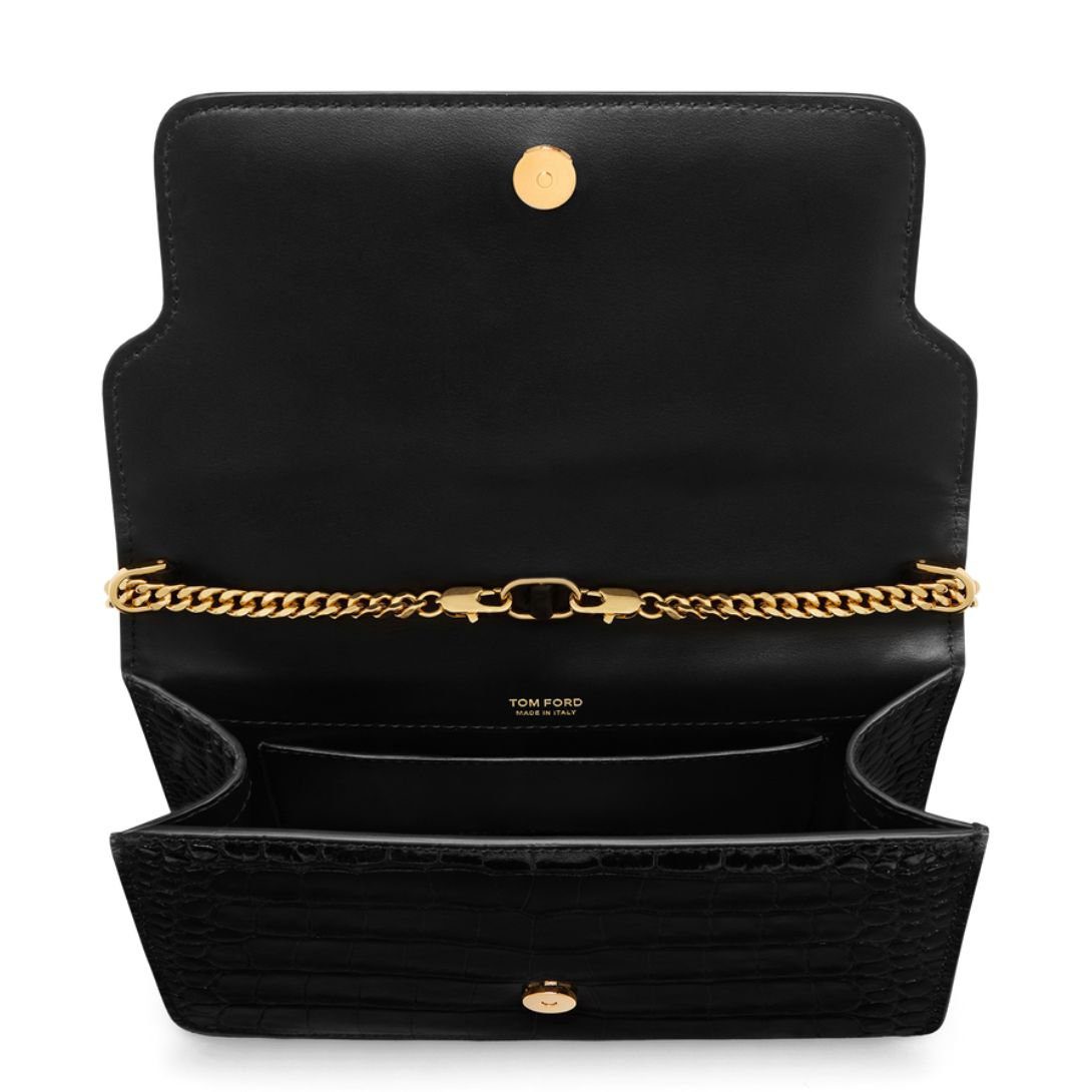 Home WOMEN TOM FORD WOMEN HANDBAGS TOM FORD STAMPED CROCODILE LEATHER SMALL SHOULDER BAG BLACK