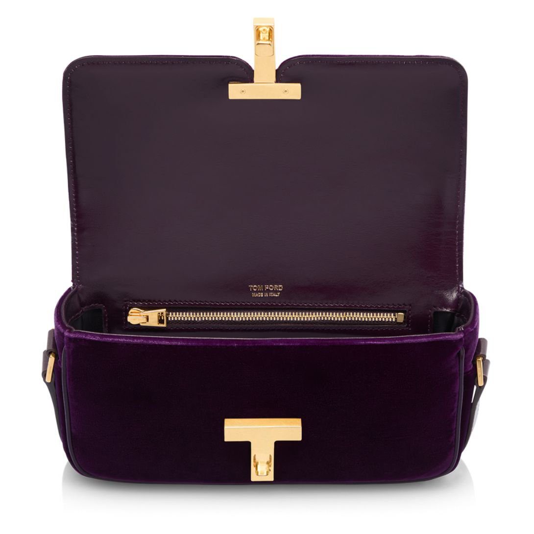 TOM FORD VELVET WALLIS E/W SHOULDER BAG PURPLE