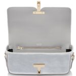 Crafted from velvet (68% viscose, 32% cupro), the bag exudes a luxurious feel, while the smooth calf leather (100% calfskin) shoulder strap ensures durability and comfort.