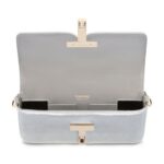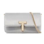This sophisticated bag features a T metal closure with an engraved logo, adding a luxurious and timeless touch to its sleek design. Its structured silhouette and fine craftsmanship make it a statement accessory for any occasion.