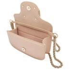 Elevate your style with platinum-finish hardware and a magnetic closure adorned with the iconic logo, adding a touch of glamour to every look. The nappa leather lining houses a slip pocket for convenient organization, while the removable leather handle offers added versatility.