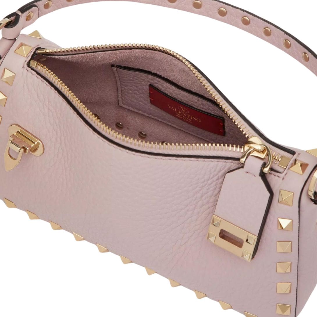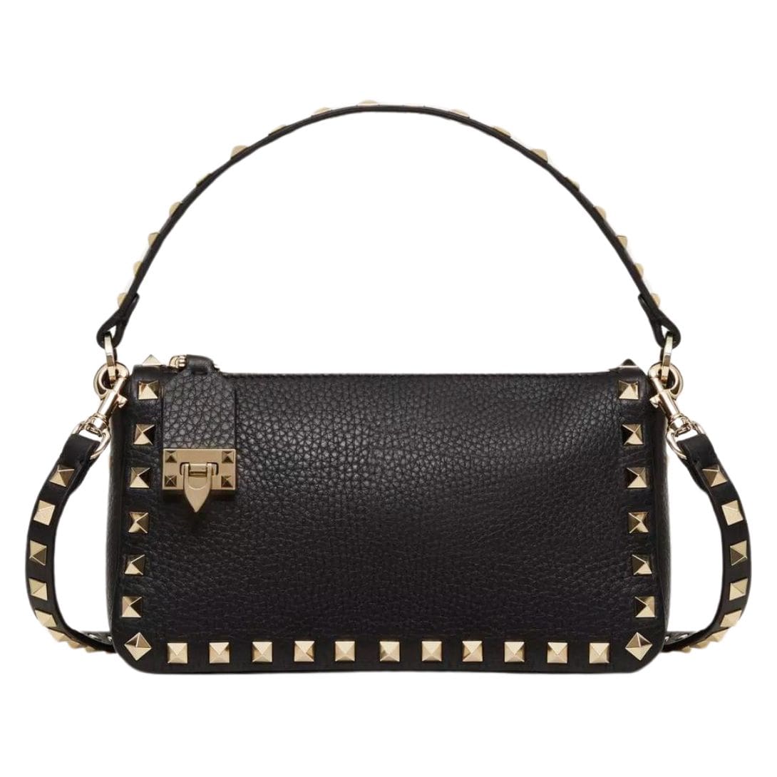 The valentino small rockstud grainy calfskin crossbody bag. This small valentino garavani rockstud crossbody bag in grainy calfskin leather, iconic hook closure is reinterpreted to secure the zip pull.