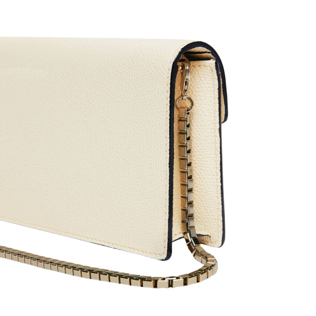 Fashioned from our renowned Millepunte calf leather and lined with smooth leather, the VALEXTRA Iside Clutch bag epitomizes desire and refinement. A substantial chain shoulder strap enhances Exemplifying Valextra’s urban craftsmanship, and its graceful silhouette. The white hue adds a vibrant touch to both neutral and bold color schemes, framed by our distinctive hand-painted black lacquered Costa edging. Offering ample space for essentials, including the iPhone Pro Max, it becomes an indispensable accessory for evening events and special occasions.