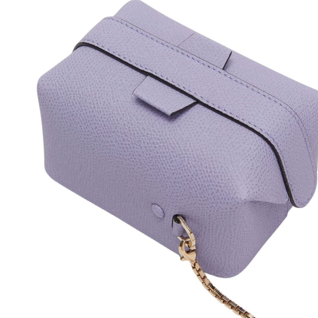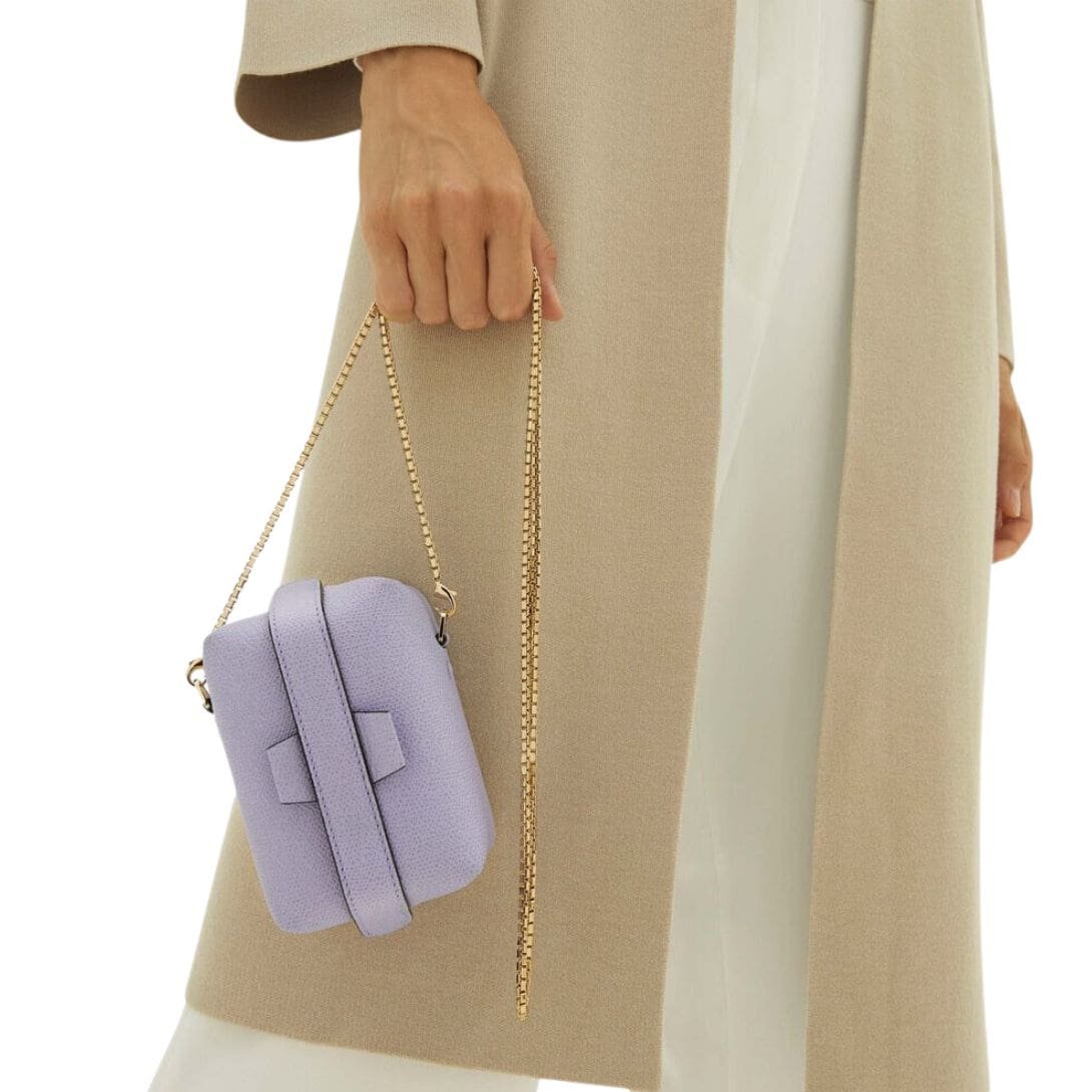 The Valextra Tric Trac crossbody Nano bag ventures into new realms while upholding Valextra’s iconic status. Crafted from our signature Millepunte calf leather, it boasts a captivating vibrancy in LAVENDER. Enhanced by the sleek black lacquered Costa edging, it emerges as a sought-after statement piece that embodies the essence of Valextra. The inclusion of a detachable chain strap adds a modern twist, offering versatility in how it can be worn.