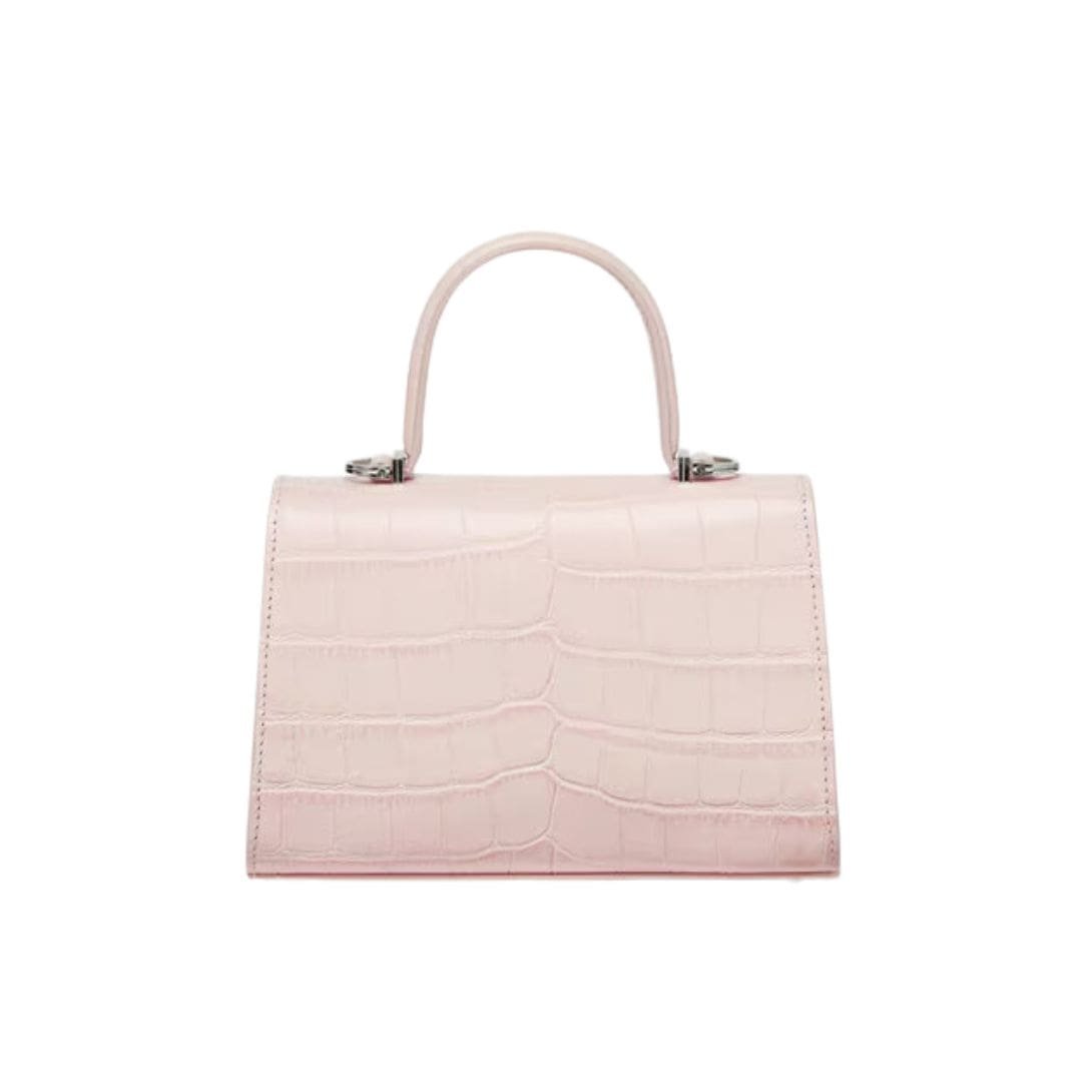At first glance, the handbag captivates with its sleek silhouette and impeccable craftsmanship. The croc-effect leather exterior exudes a sense of grandeur, exalting the iconic Versace aesthetic. Each scale-like texture is meticulously embossed, creating a tactile allure that beckons to be touched.