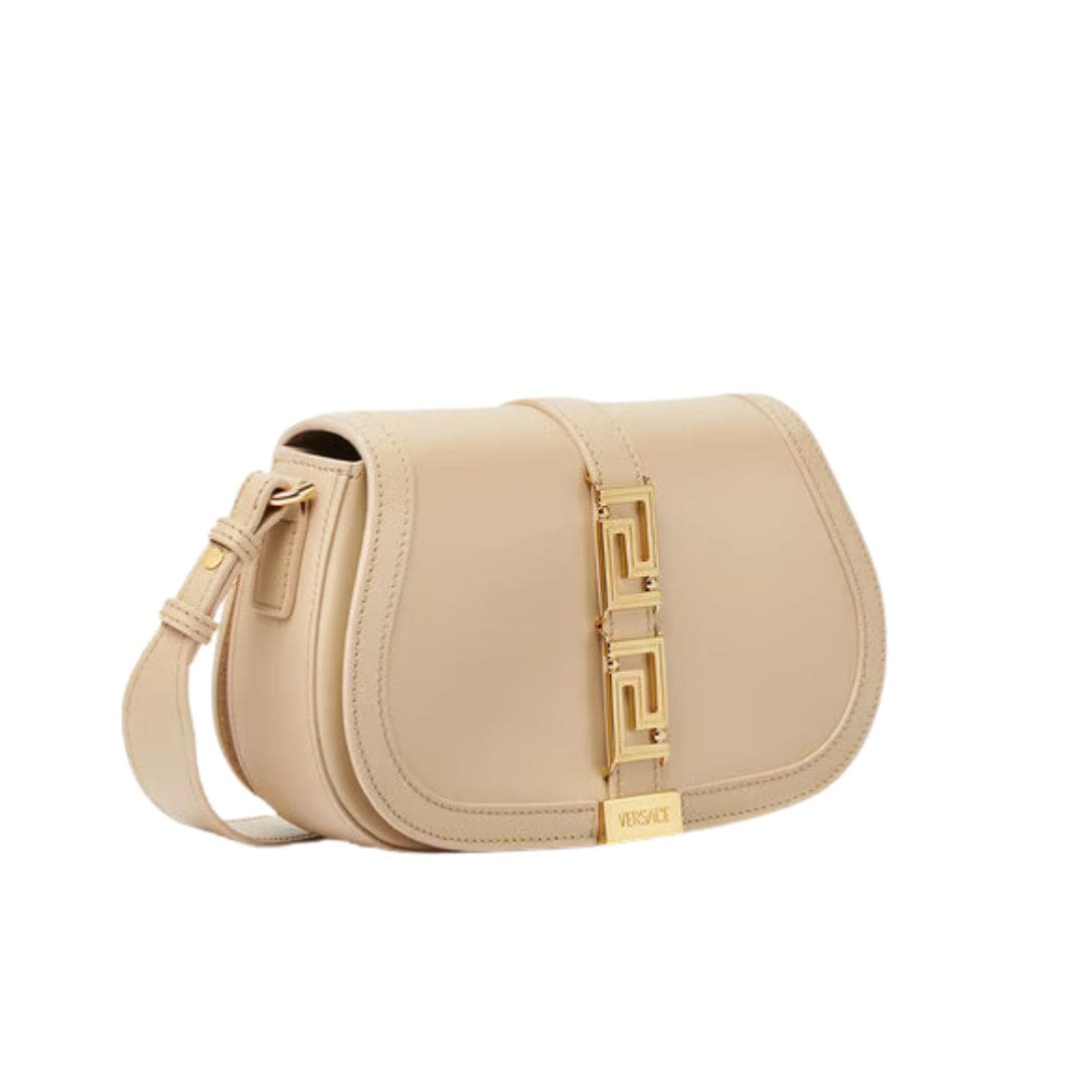 At first glance, the bag’s silhouette exudes an aura of refined glamour, boasting clean lines and a structured form that commands attention. The supple leather exterior, available in a range of opulent hues, exudes a lustrous sheen, further accentuating its lavish appeal. Adorning the front flap is the signature Versace Greca motif, an emblem of the brand’s rich heritage and illustrious legacy. Its intricate geometric pattern, meticulously embossed or embellished, adds a touch of regal splendor to the design, reminiscent of ancient Greek artistry and architectural marvels.