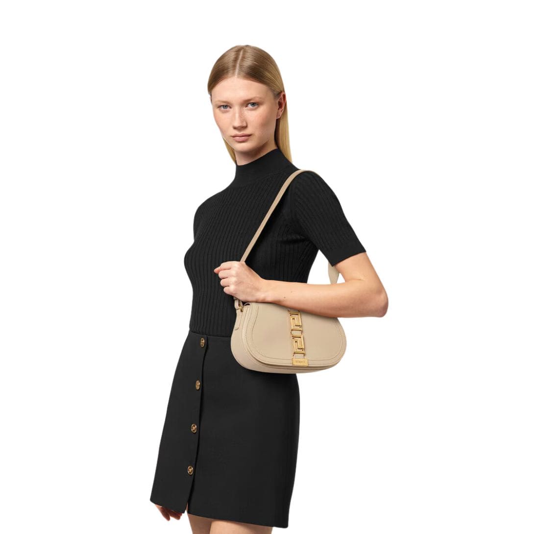 The Versace Greca Goddess Shoulder Bag epitomizes the essence of luxury and sophistication, encapsulating the iconic design elements synonymous with the renowned Italian fashion house. Crafted with meticulous attention to detail, this exquisite accessory seamlessly blends timeless elegance with contemporary flair.