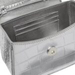 At first glance, the bag captivates with its sleek silhouette and radiant metallic finish, which adds a touch of glamour to any ensemble. The metallic sheen exudes a sense of luxury, catching the light with every movement and commanding attention wherever it goes. Its compact size makes it perfect for those occasions when only the essentials are needed, yet it boasts enough space to accommodate your must-have items effortlessly.