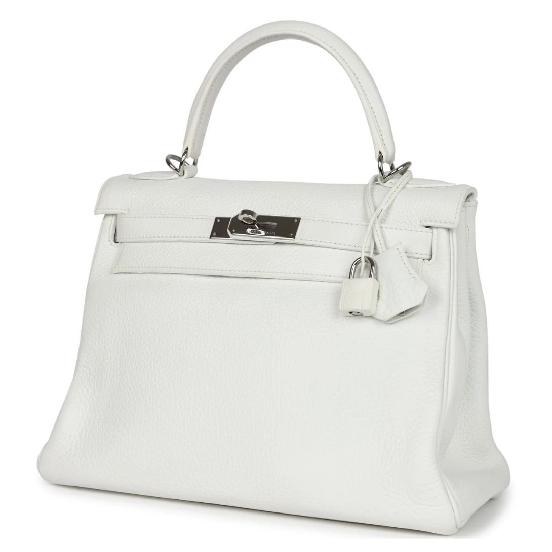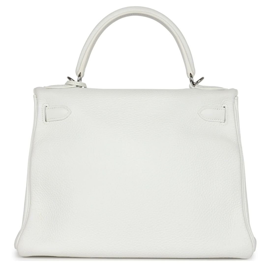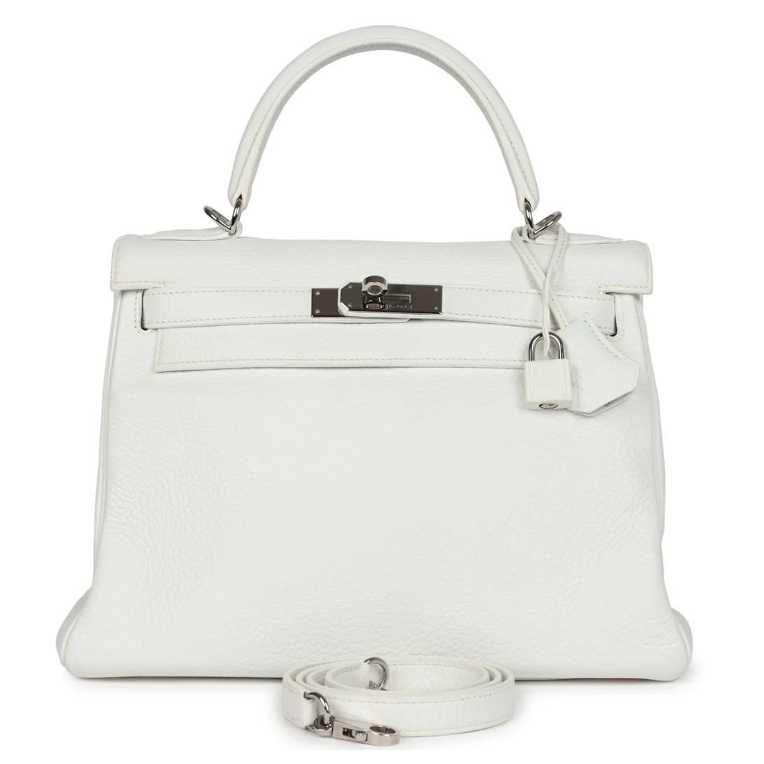 VINTAGE HERMÈS KELLY RETOURNE 28 WHITE CLEMENCE PALLADIUM HARDWARE